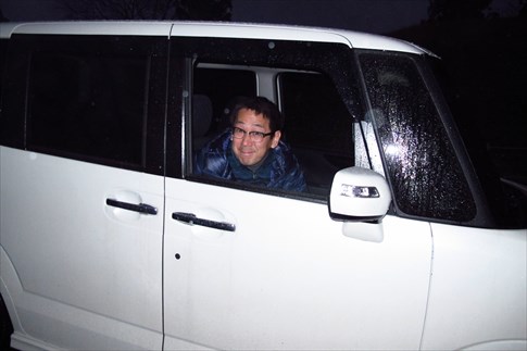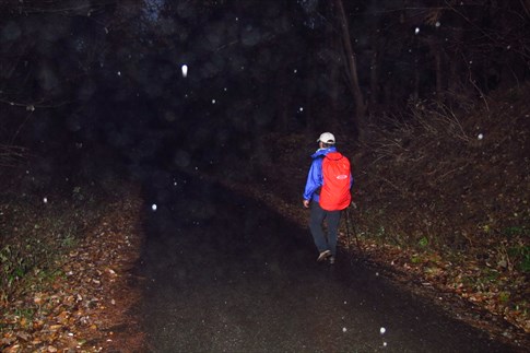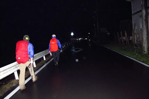 本降りの雨と暗闇を心配して粥新田峠で二回目のサポートをしてくれたMIZUOさん(感謝) |