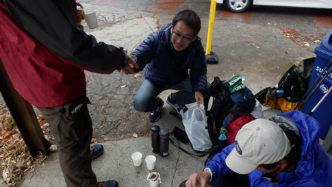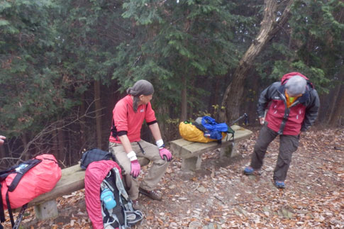 温かい飲み物でリフレッシュして定峰峠を出発 |
