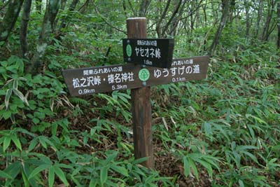帰路は先程のヤセオネ峠分岐点まで戻り車デポ場所のヤセオネ峠駐車場へ向かう。mikio