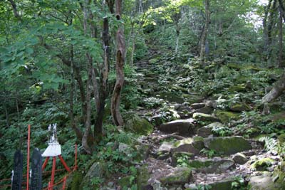 鳥居を潜って山頂までの間には多くの石碑が建立されており、信仰の山としての往時を