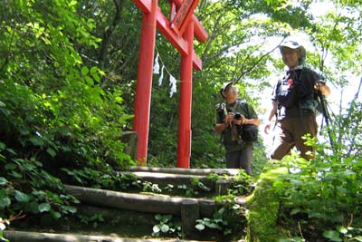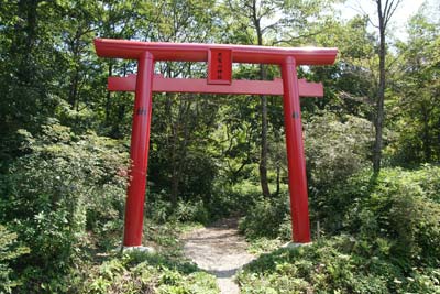 赤い鳥居(ヤセオネ峠分岐点)にでる。