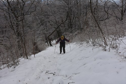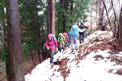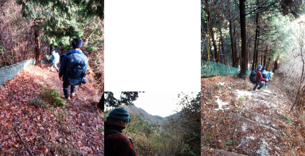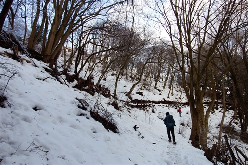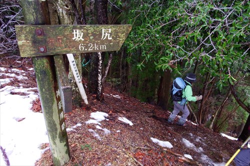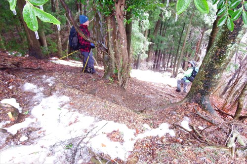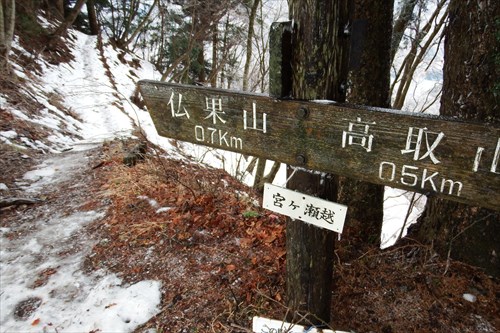 残雪地帯に突入 | 高取山マデ0.8`指導標 | |||