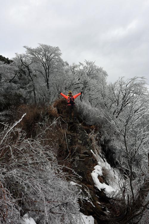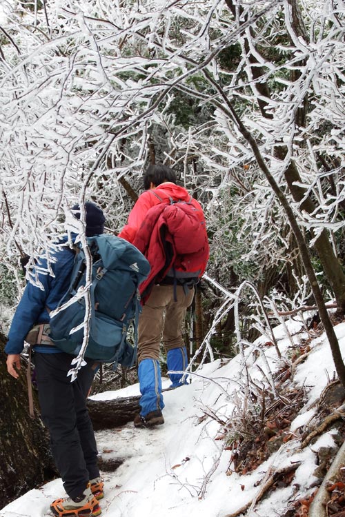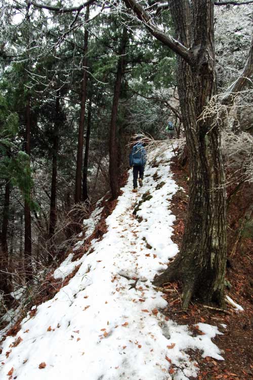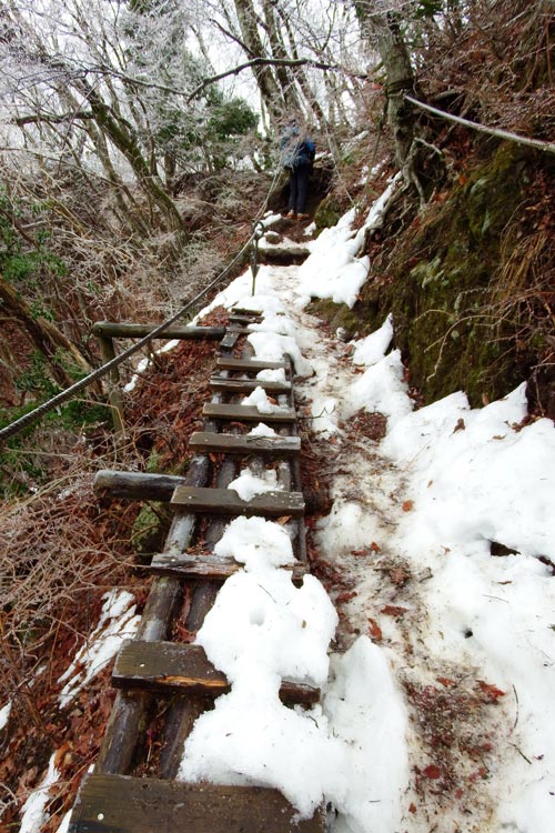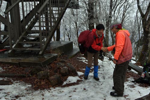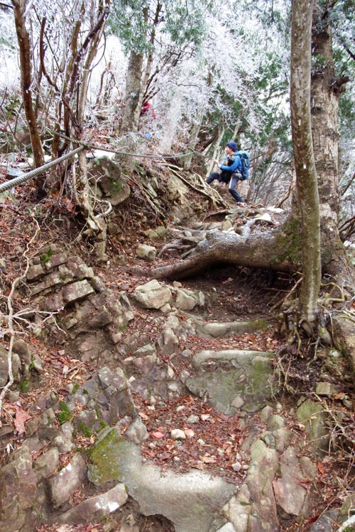 山頂まで300b指導標を通過後はアイスバーン状態のためアイゼン必須 | ||||