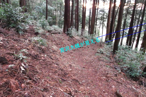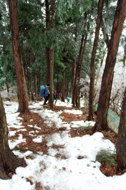 丹沢山塊東辺樹木案内板以後、杉林を大きく下って緩く登り返せば | ||||