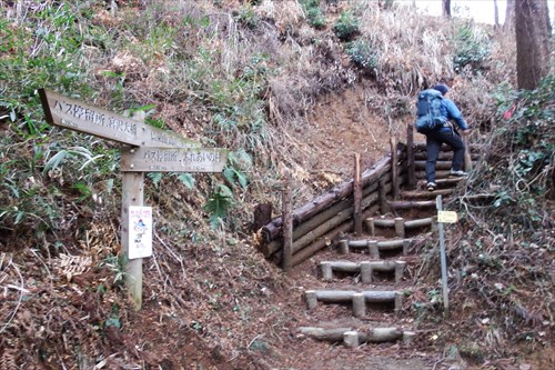 半原越マデ1.0`指導標に従い本尾根を下る/土山峠分岐点・枝尾根地点なので要注意/リッチランド分岐点まで緩い下りとなる | ||||