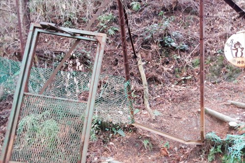 林道出合いまで木階段の箇所が多い | 朽ちかけた鳥獣避けゲート | |||