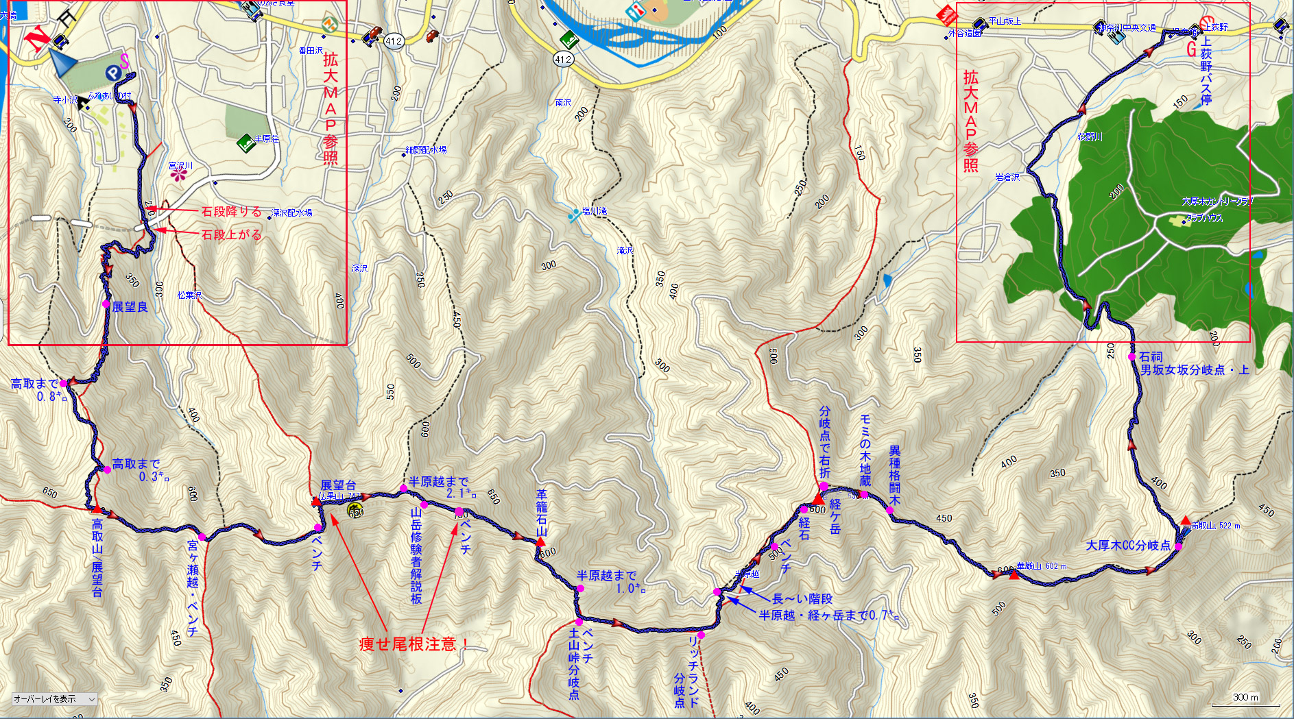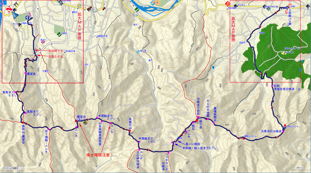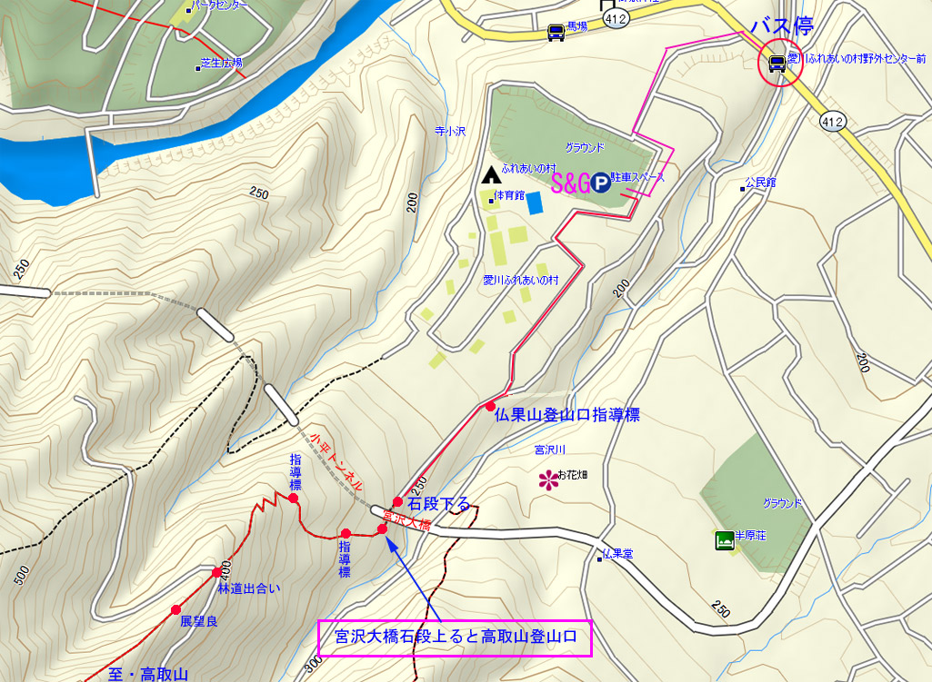 愛川ふれあいの村〜高取山登山口拡大MAP | ||||