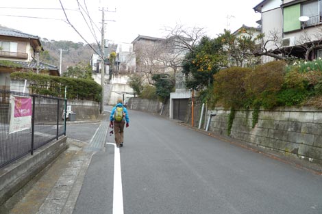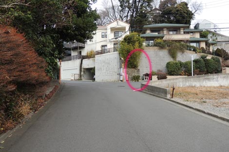 右上写真の○囲み地点指導標 | 今暫く住宅街を歩く | |||
