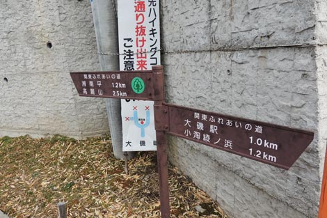 湘南アルプス・ハイキングコース入口 | 信州の里山とは樹木の植生が全然違う | |||