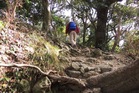男坂(急登)を頑張っているFハイカー | 男坂終了 | |||