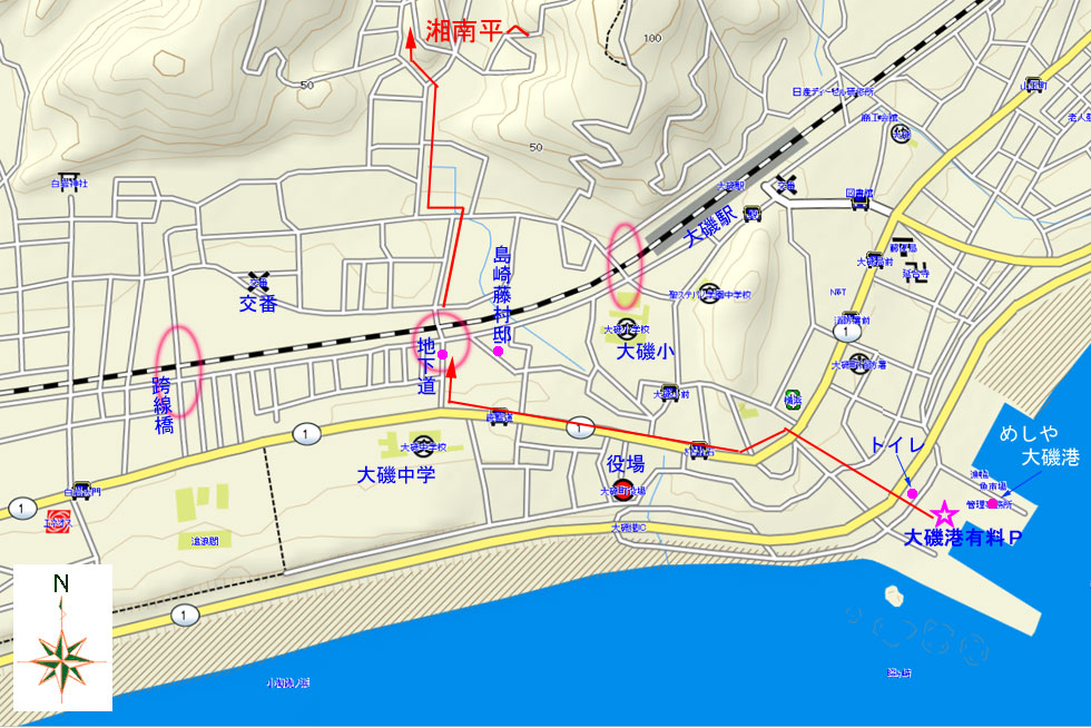化粧坂〜大磯港駐車場拡大図 | ||||