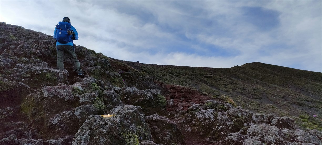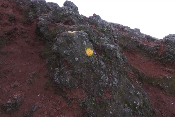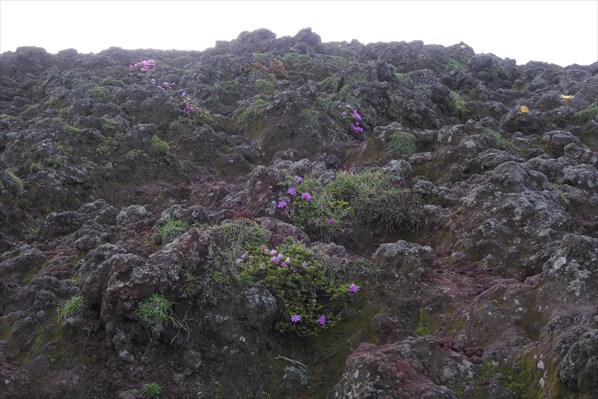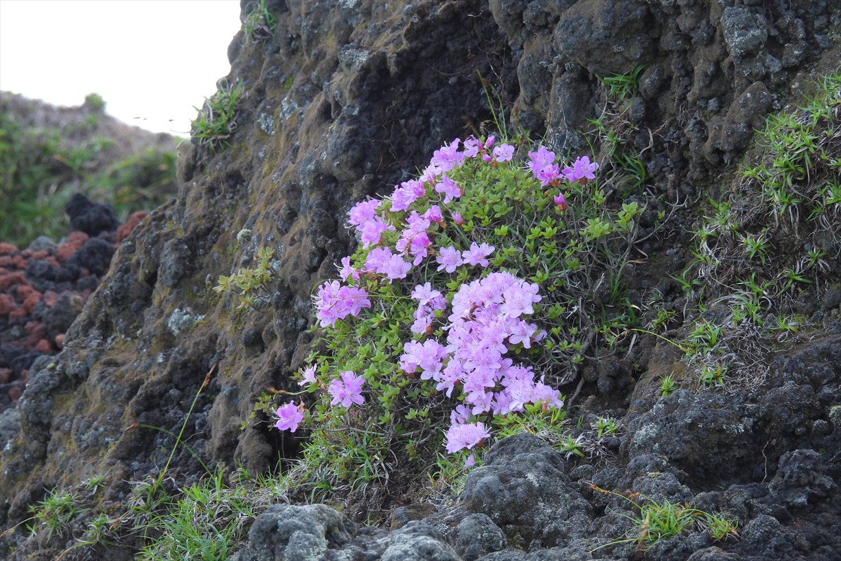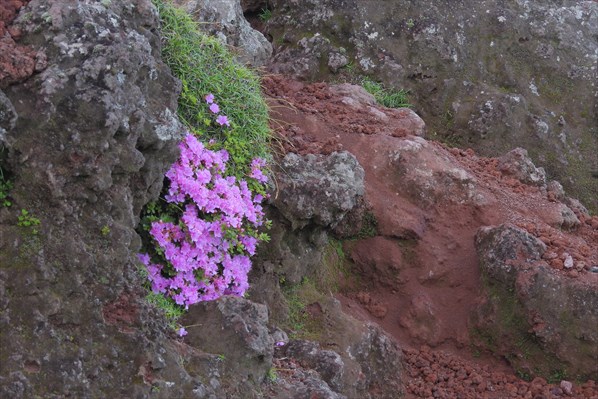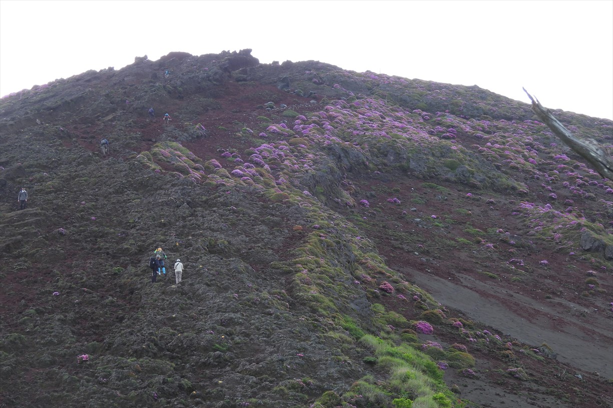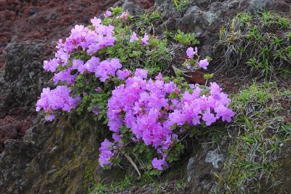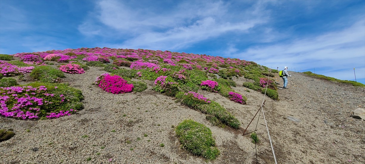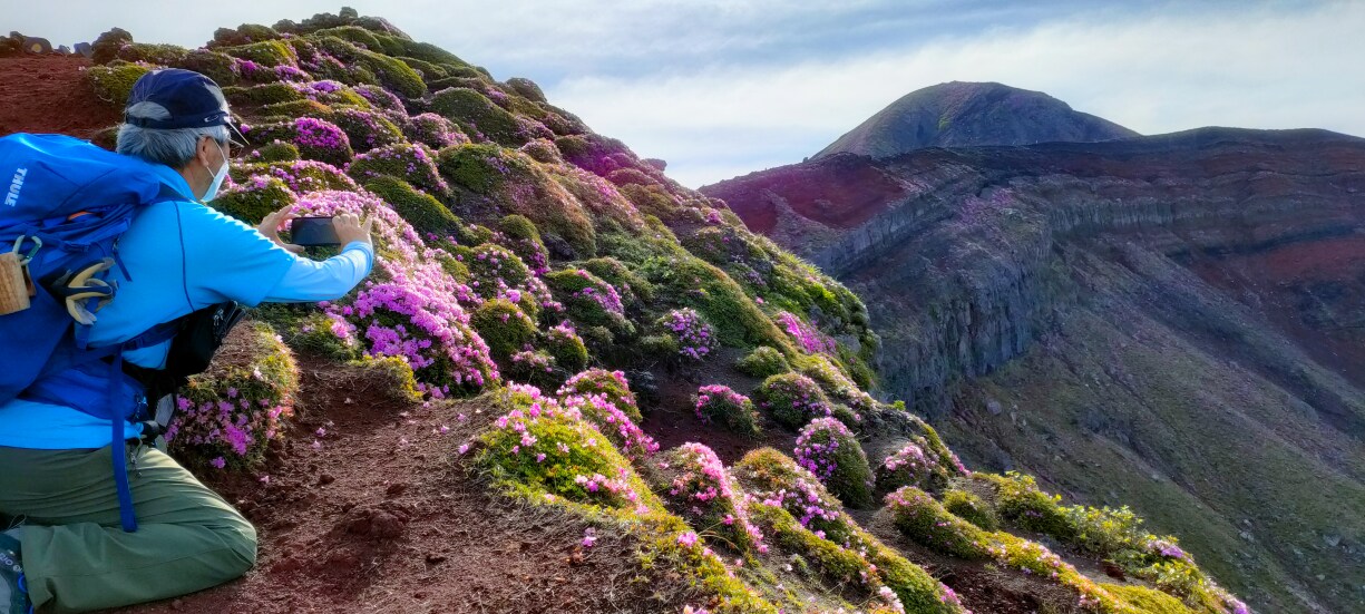 岩肌で咲くミヤマキリシマ この辺りからちっとも前に進めなくなってしまいました(笑) |