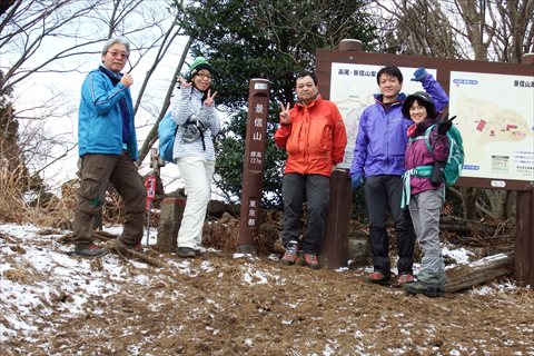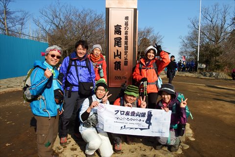 新設された高尾山標柱前でブロ友登山隊記念撮影 | ||||