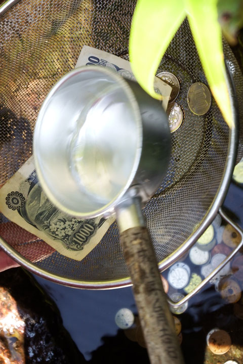 福徳弁財天でお札を清めるぴろりん隊長 | ||||