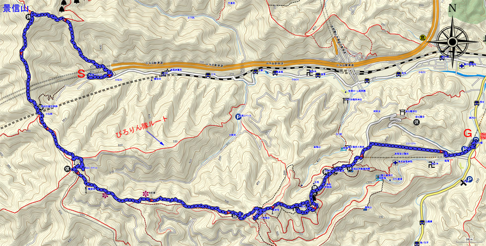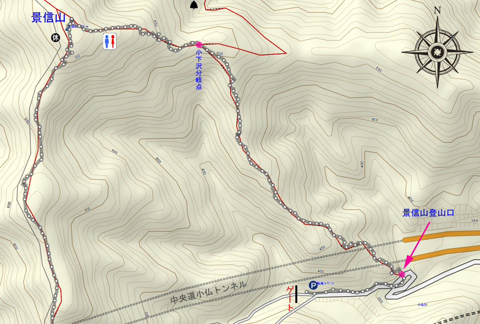 小仏駐車場−景信山拡大ルートMAP | ||||