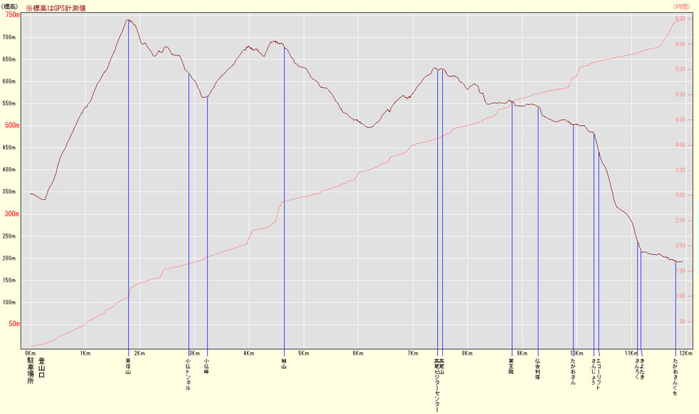 景信山/727.1M 高尾山口P/190M 標高差/537M 総歩行距離/11244M(リフト移動分除く) | ||||