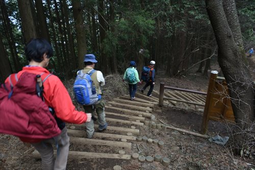 それほど急でないうえ、所々に足休め地帯があるので登りやすい登山道だが・・・