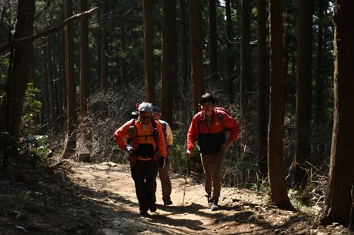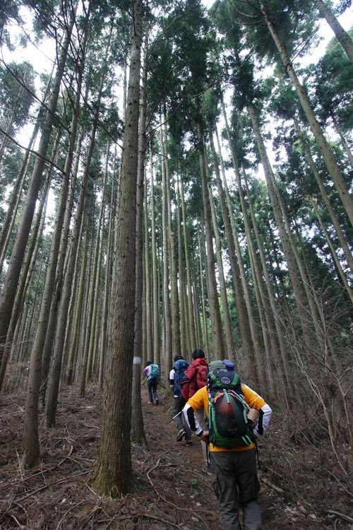 登山道は杉植林地帯で花粉症持ちはツライ |