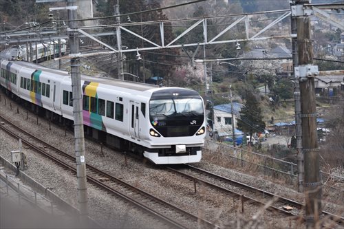 撮り鉄メッカで30分に1回の特急あずさをキャッチ! |