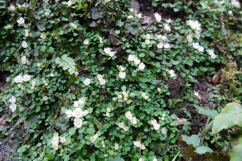この沢沿い、あちらこちらでハナネコノメ植生を見かけたが開花時期は7日後くらいと思われる |