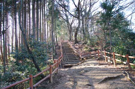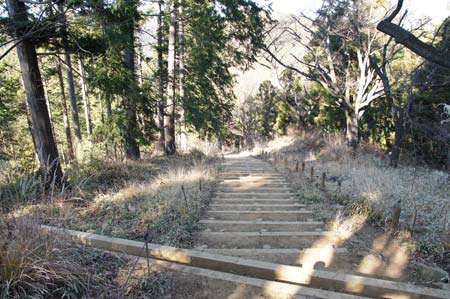 標高の高い場所を目指しているのに、 なぜか長〜い下り階段が・・・ 帰りの事を考えると足取りが重くなるぜよ〜!! |