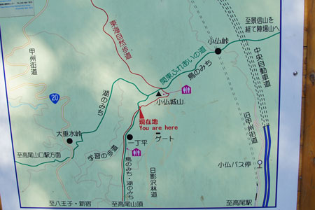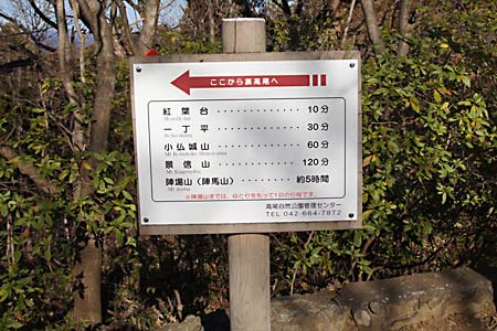 小仏城山マデ60分 景信山マデ120分 | 左手に富士山を眺めながらモミジ台を通過 | |||