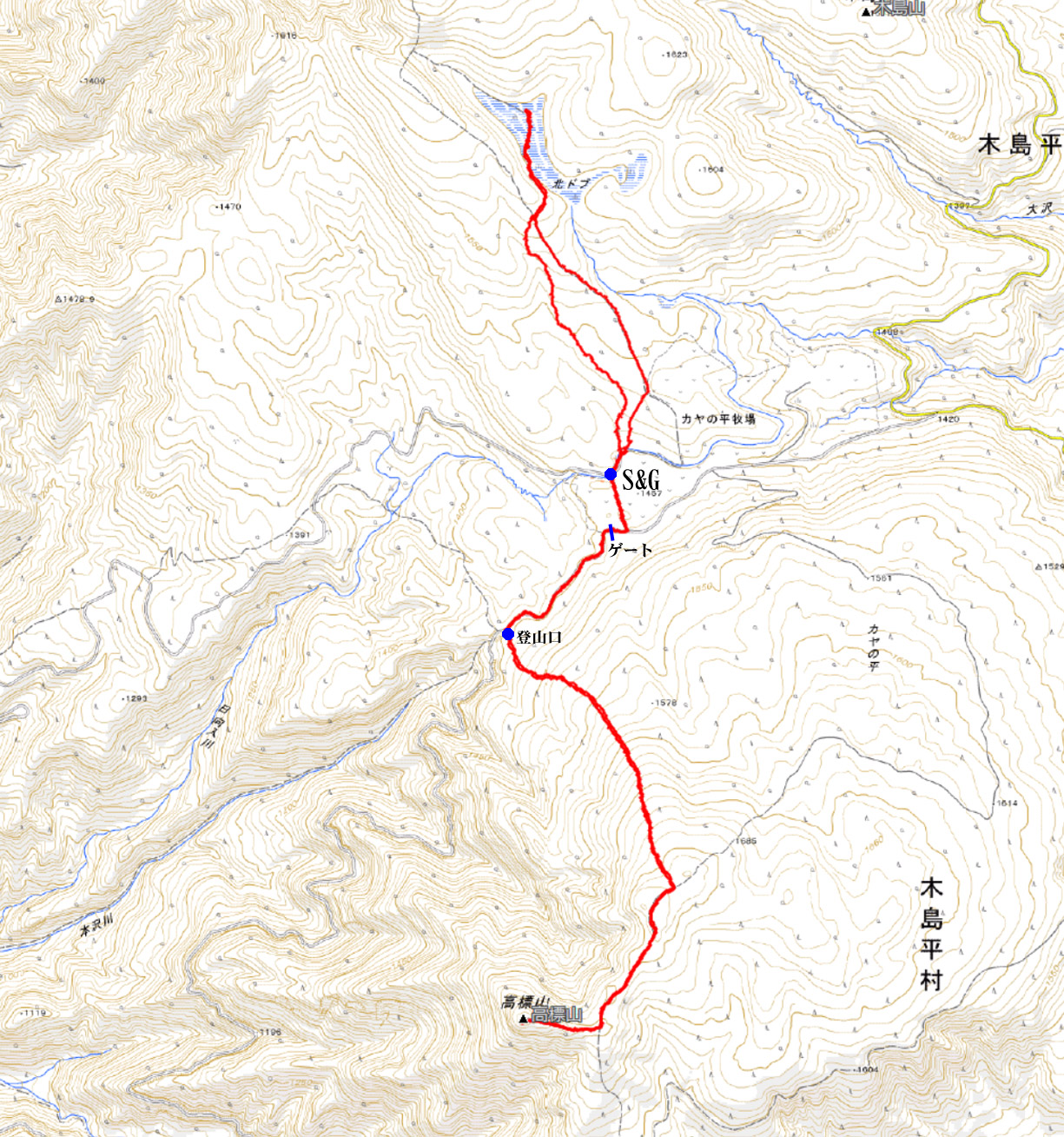 高標山&北ドブ湿原ルート地図 (計曲線 50M 主曲線 10M) |