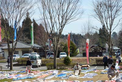 道の駅・霊山たけやま/鯉のぼりの準備中 | ||||