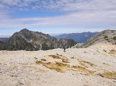 帰路は別山南峰まで戻り剱御前小舎へ向けて別山の尾根筋を緩く下る。