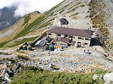 剱御前小舎(トイレ有)前のベンチでひと休みしたら雷鳥坂と呼ばれる急斜面を下るが、