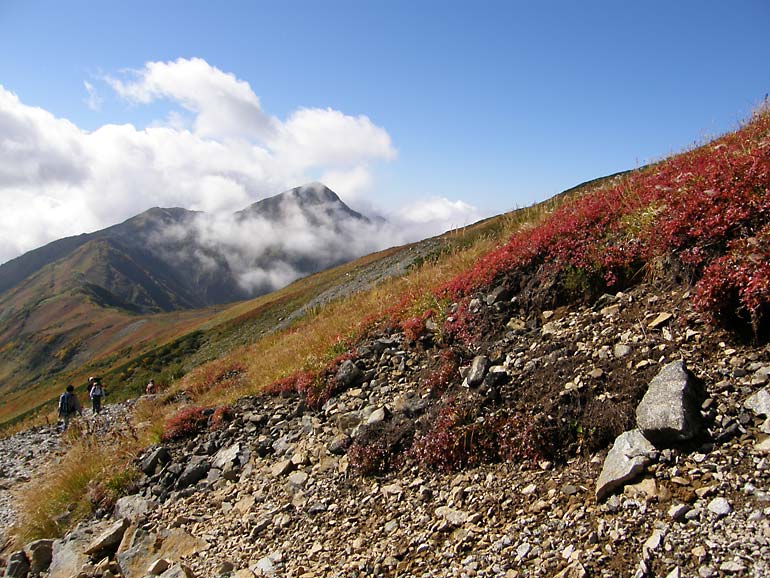 一ノ越山荘が建つ鞍部は切り通しのようになっており、西に奥大日岳と大日岳、