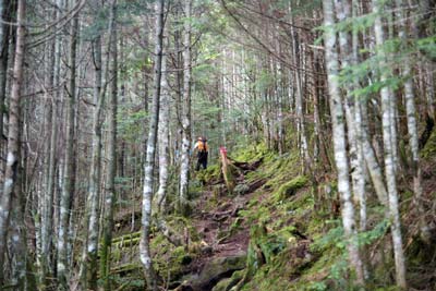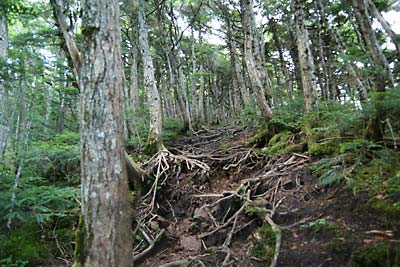 第一展望台近辺まで展望の無いシラビソ樹林帯が続く |