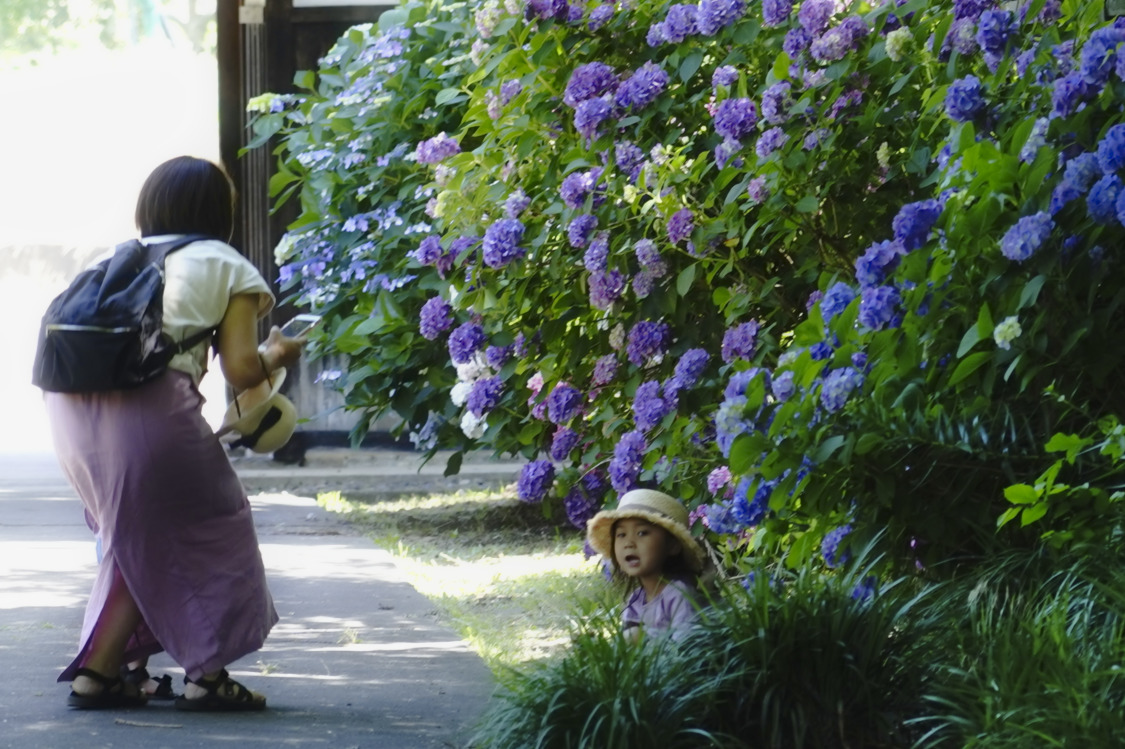 ˜@‚Ì‘O‚ɃAƒWƒTƒC‚ðŽB‰e | ||||