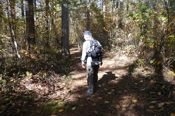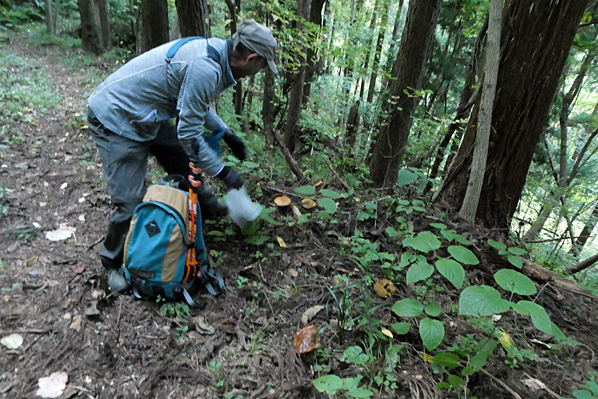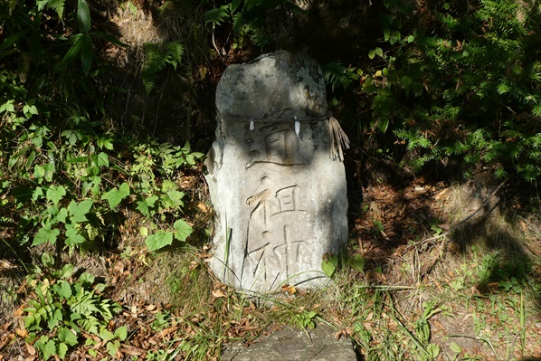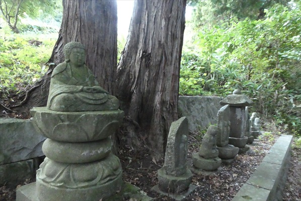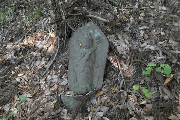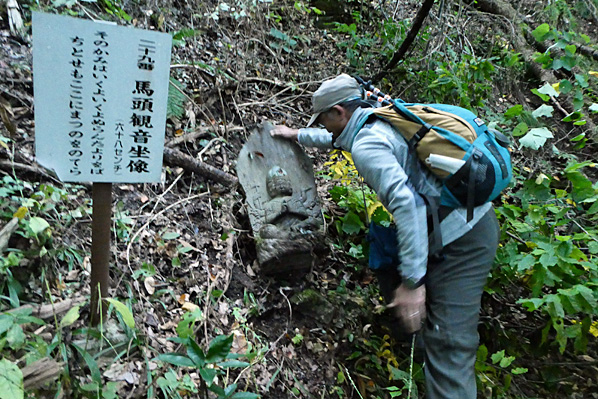 転がり落ちていた石仏を元の場所に戻してあげる雪ちゃん |
