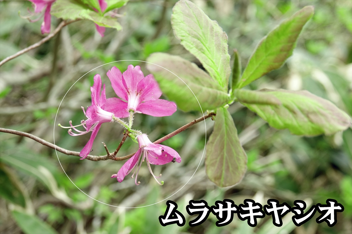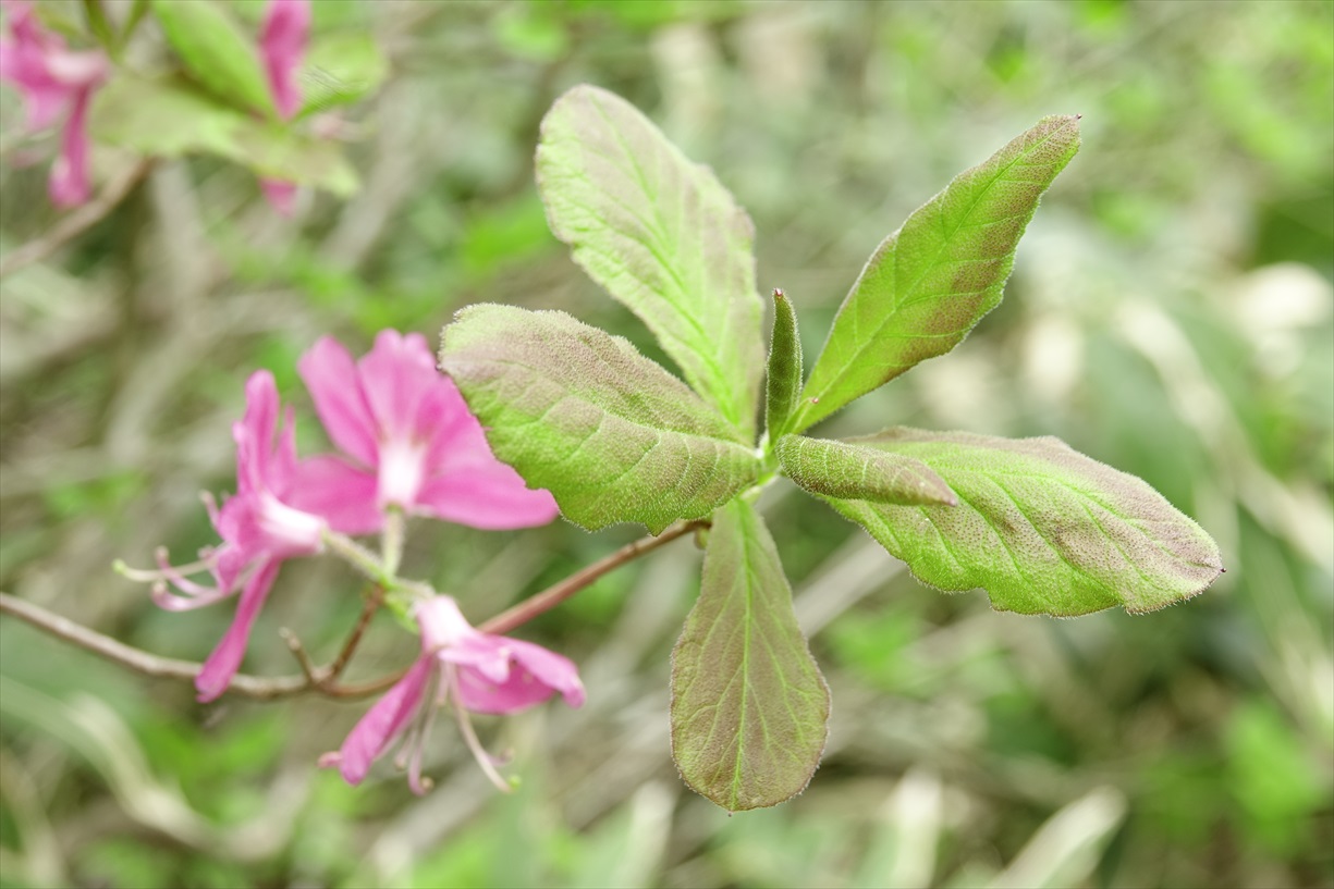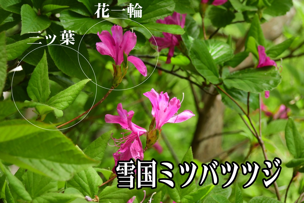 花友コバさんから「ムラサキヤシオ」と「ユキグニミツバツツジ」の違いを教えていただきました♪ ムラサキヤシオは「花が一輪ではない」 「葉っぱが三ツ葉でない」 |