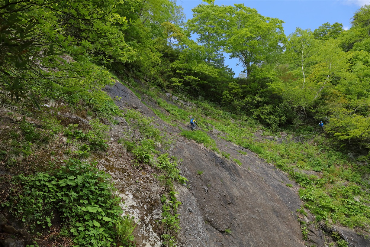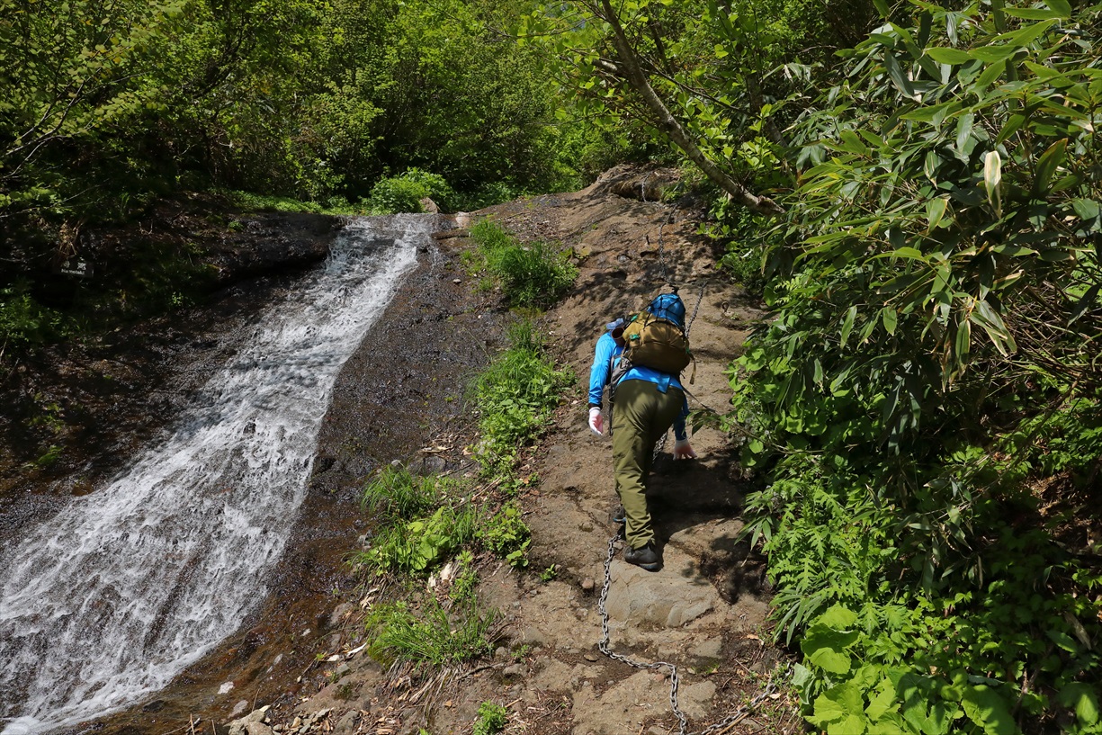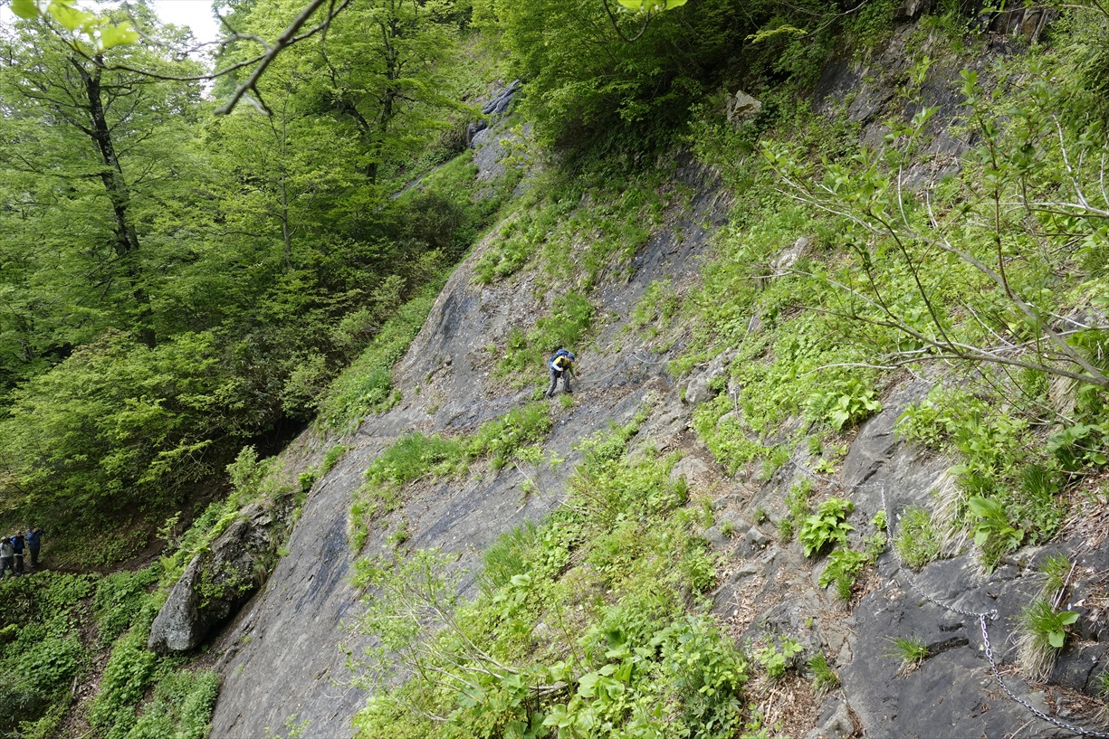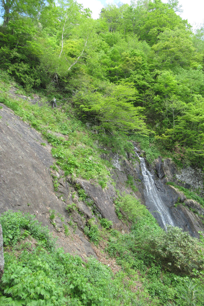不動滝横のクサリ場 | 不動滝上部の沢をつめる | |||