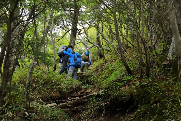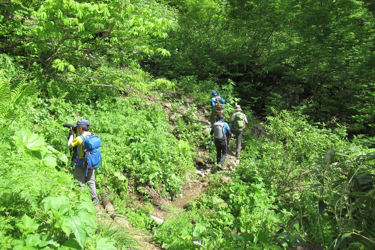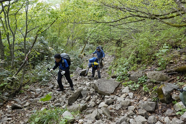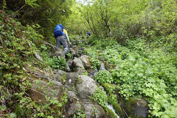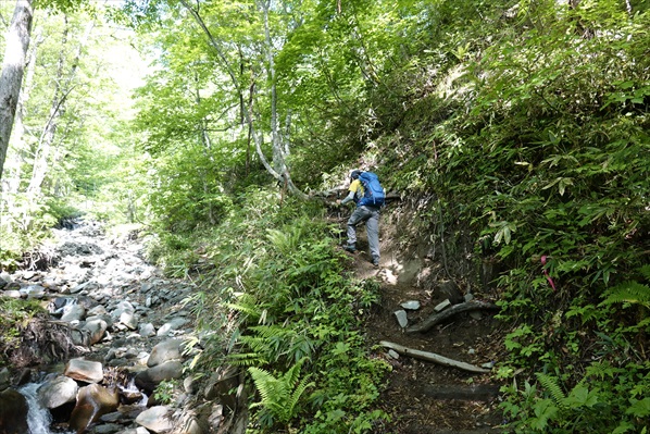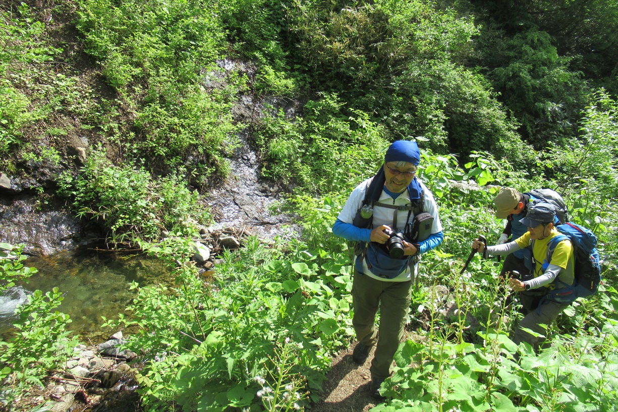 不動滝横のクサリ場 | 不動滝上部の沢をつめる | |||