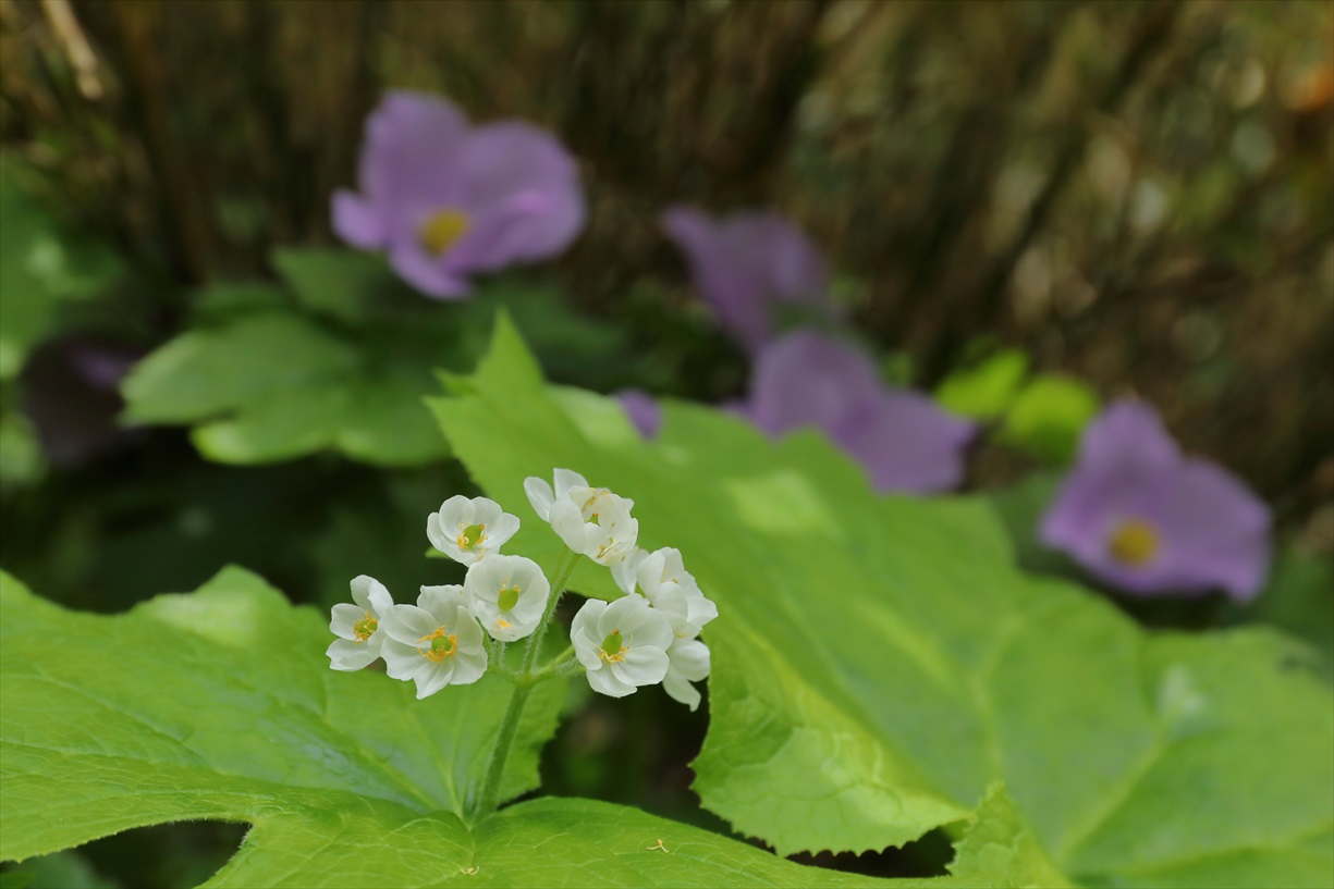 花友コバさんよりクエスチョン 上のサンカヨウと下のサンカヨウの違いは何でしょう? |