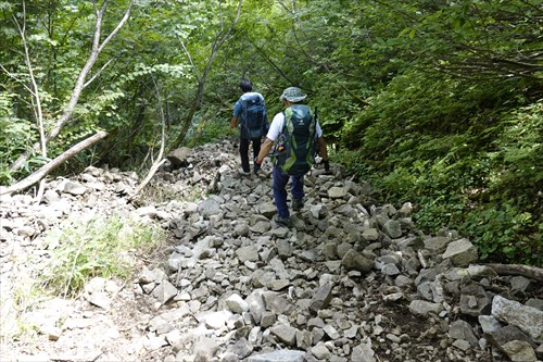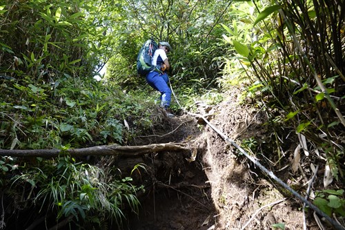 豪雨災害で荒れた道が戸隠牧場まで続くので慎重に下る | ||||
