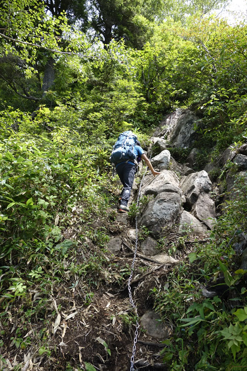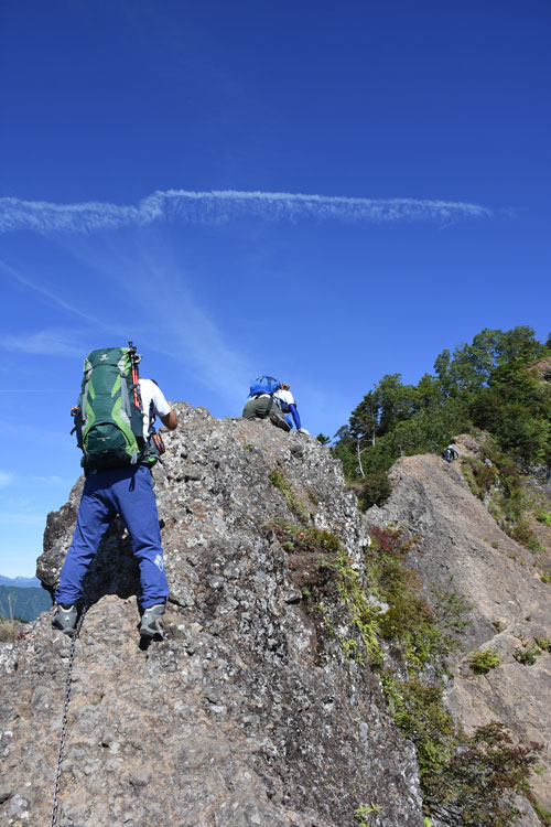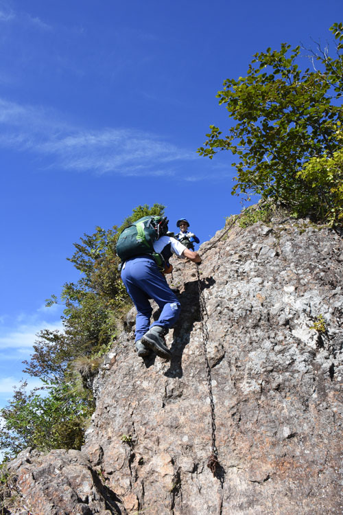 タテヨコ鎖場は三点支持で登りましょう | ||||