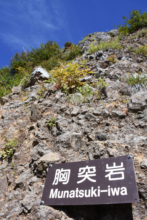胸突岩 ここを滑り落ちた山友達がいたけれど無事で良かったね |