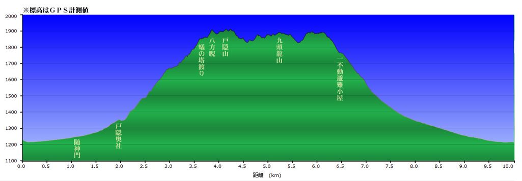 戸隠山・蟻の塔渡り~一不動周遊R高低図 | ||||