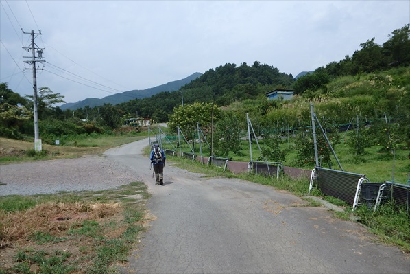リンゴ畑と臨時駐車場を抜けると米山城・砥石城櫓門駐車場が近い |