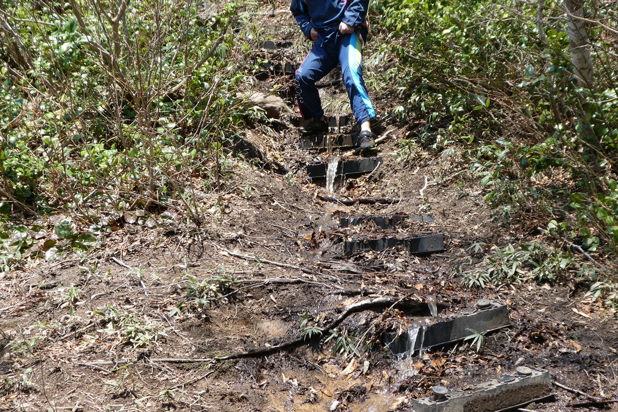 泥水が滝のように・・・ ここで転んだらエライこっちゃ(;´Д`) |