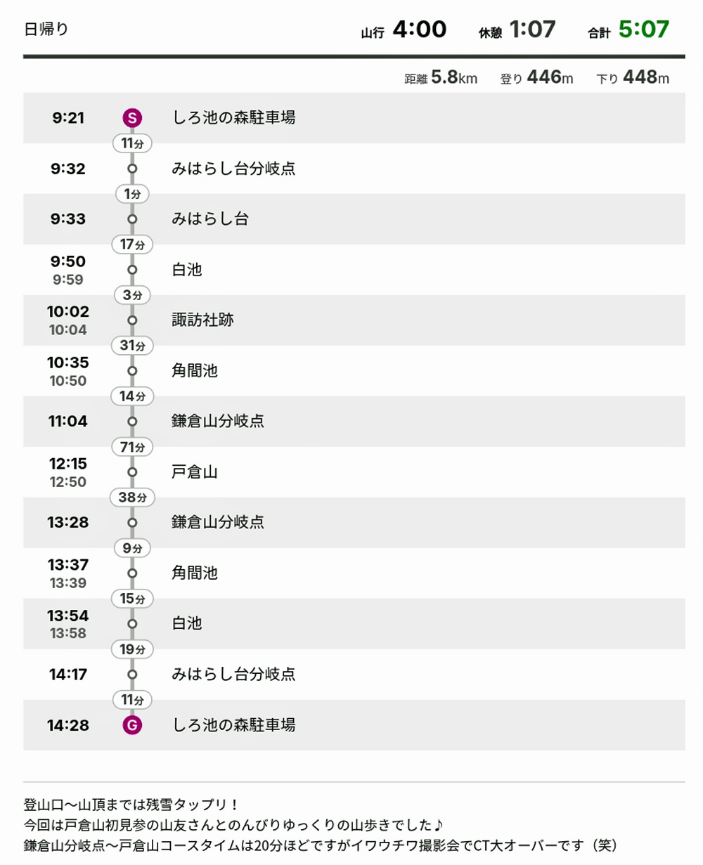 《戸倉山コースタイム他》 写真撮影時間20分〜100分含む |