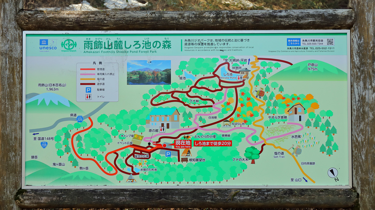 雨飾山麓しろ池の森駐車場(トイレあり) | どんぐりの小径 | |||
