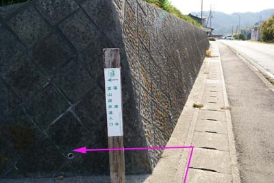 菜の花や水仙を見ながら | 福満寺入り口の富山遊歩道指導標 | |||