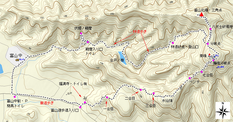 富山中学校入り口から伏姫籠窟まで800m | ||||