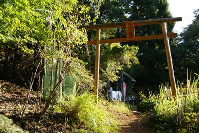 上の写真、右側林道を進み路肩駐車後赤矢印入る |