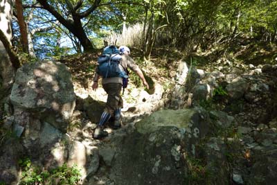 足の下ろす箇所を間違えると捻挫しやすい石ゴロ道 |